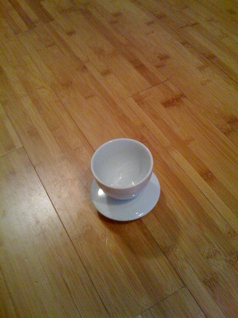 Can any of you guess what these things are? No? Well, it was my new(ish) french butter crock that I blogged about here. I had left it on the table from breakfast, never dreaming that Dieter would think to get into it. How could he, I thought. Well, perhaps pugs are as smart as monkeys or crows, or maybe pushing it off the table to remove the hard "outer shell" was just an accident.
